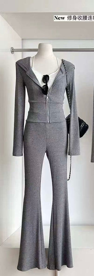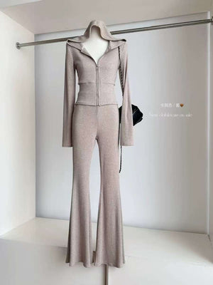 Elevate your everyday look with this women’s hooded slim fit short jacket and casual pants set, designed for comfort and modern style. Crafted from soft, stretch-knit fabric, this two-piece outfit features a zip-up hooded jacket that accentuates the waist and a pair of high-waisted, flared pants that elongate the legs for a flattering silhouette.