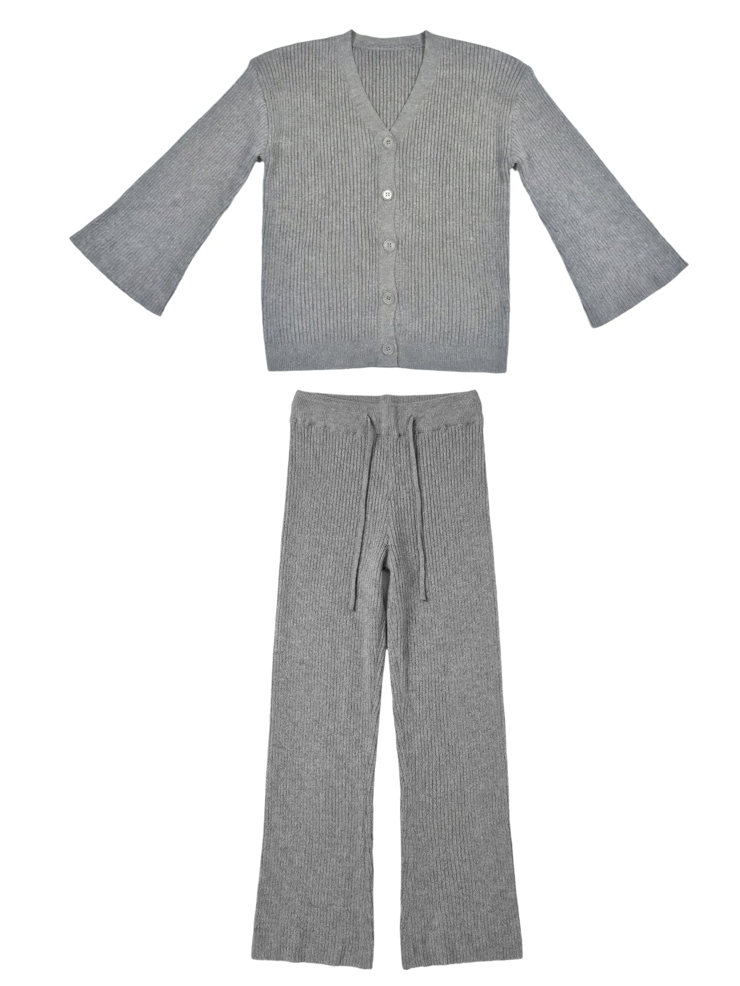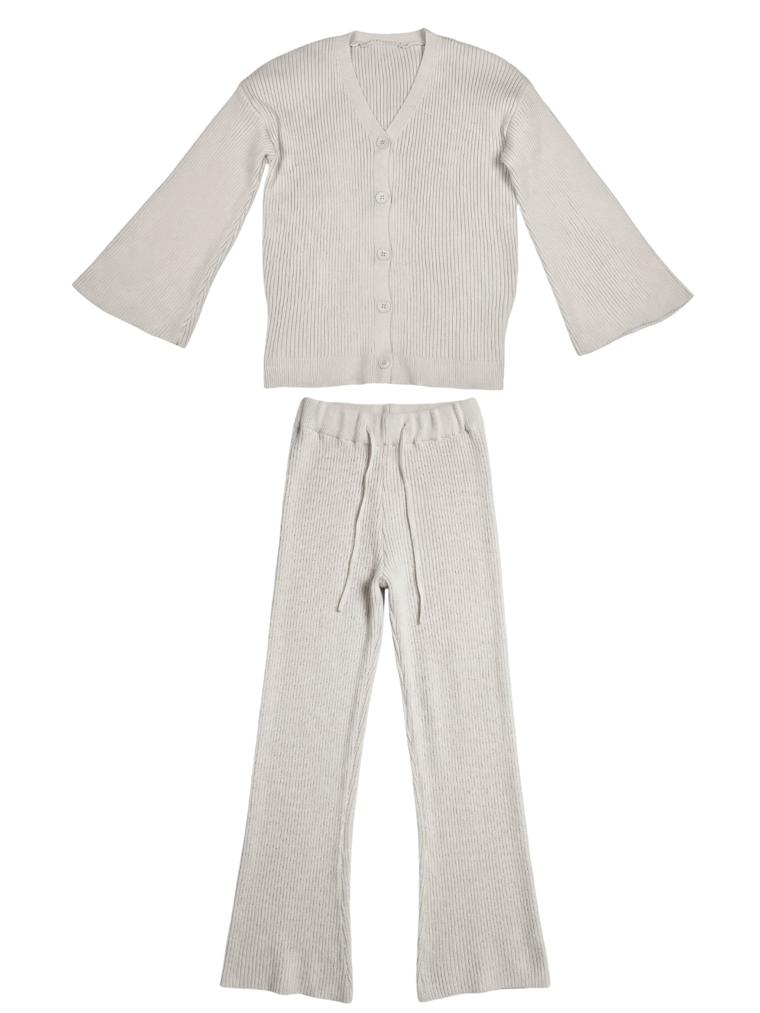 Women’s Knit Two-Piece Set – Button-Down Cardigan & Ribbed Pants