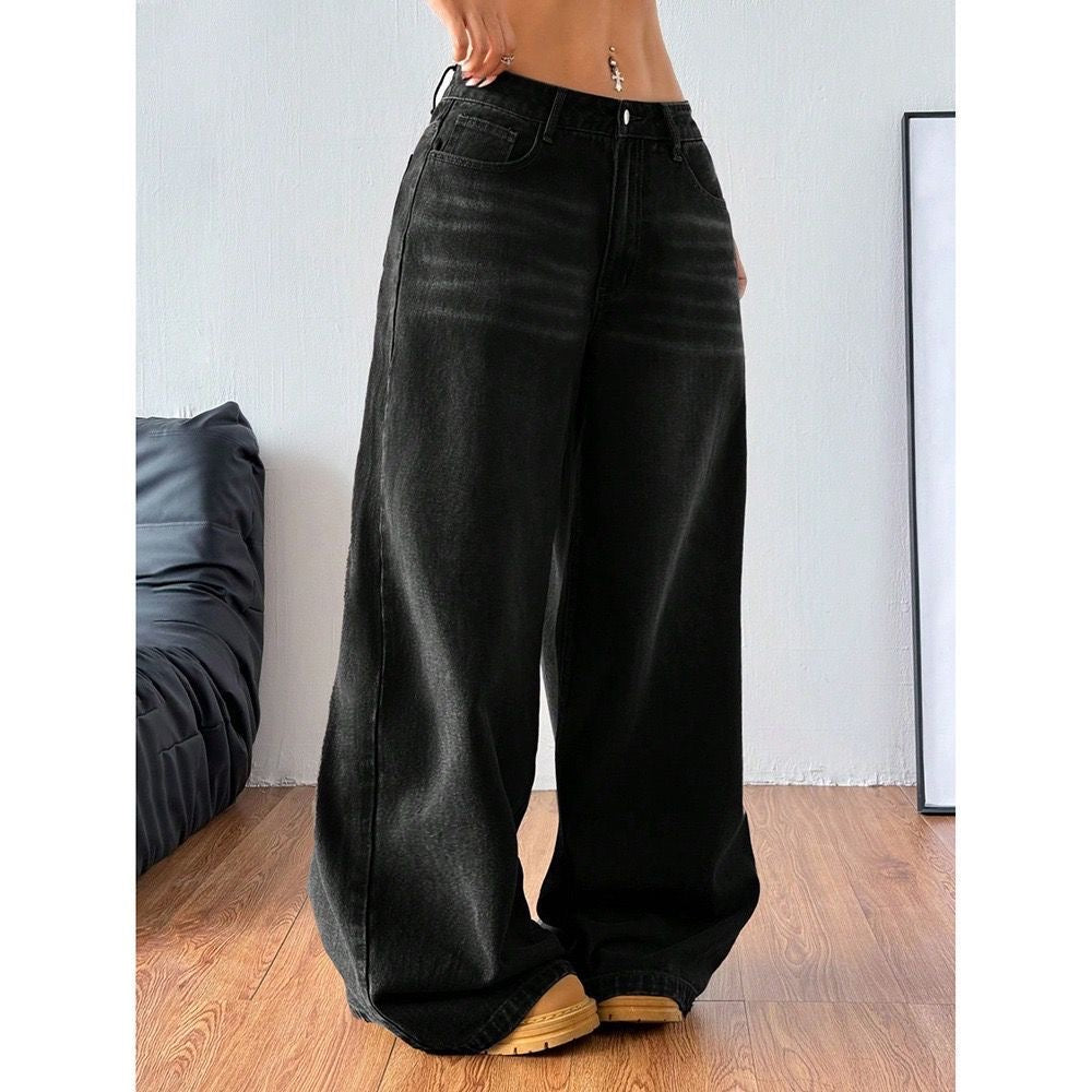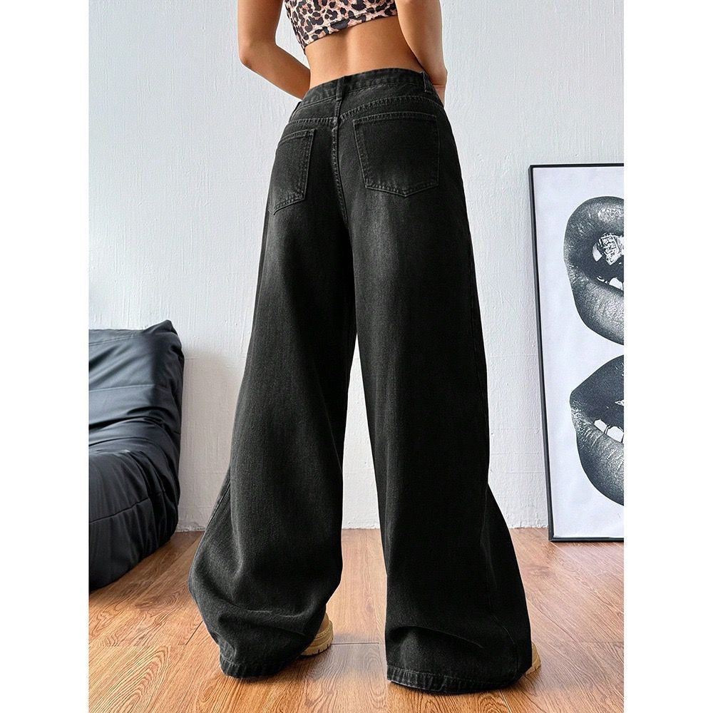 Elevate your everyday look with these washed dark gray wide-leg jeans, crafted for the perfect mix of comfort and bold street style. Designed with a loose straight fit, these jeans drape effortlessly to create a flattering, relaxed silhouette that elongates your legs and adds a chic edge to any outfit.